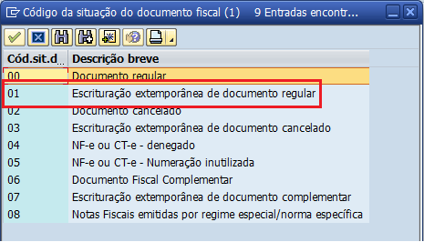O programa irá processar o status ‘79’ para o campo 'COD_SIT' da tabela de entrada 'ZLFT_ENTRADA', que indica que a nota é extemporânea, juntamente com o processamento da data real no campo 'DT_ENTRADA_REAL' da mesma tabela, no qual será lido através do campo 'DSAIENT' na tabela 'J_1BNFDOC'.