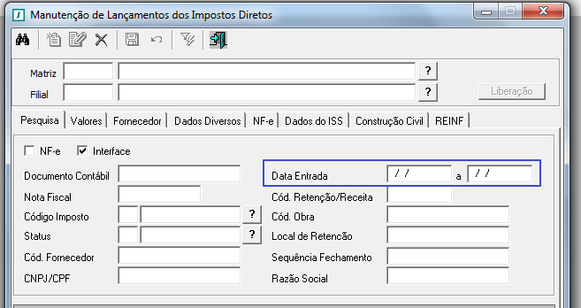Inclusão do campo Data Entrada na aba Pesquisa para quando a opção Interface estiver selecionada.