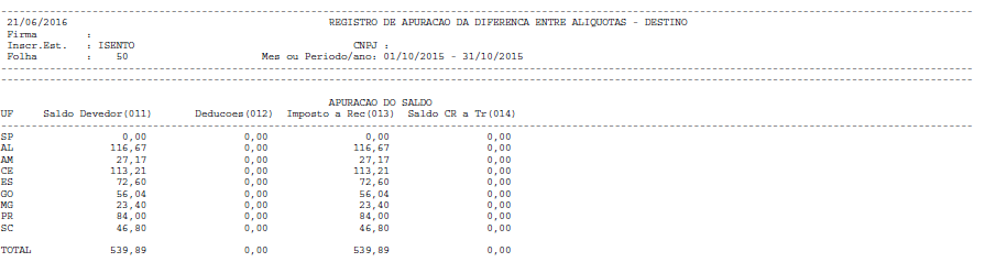 Vai imprimir o movimento do mês mesmo sem a inscrição cadastrada tanto para ST como Difal J7.