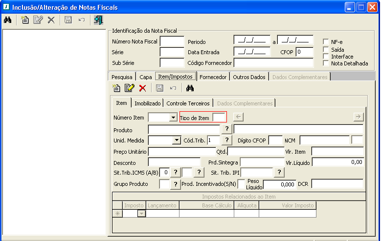 Descrição da Nota: Inclusão do campo Tipo de item na aba Item/Impostos.