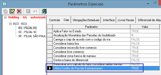Descrição: Indica se é permitido a filial efetuar o crédito extemporâneo das parcelas do CIAP.