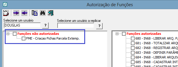 Para a criação de ficha com crédito extemporâneo no cenário 2, será necessário a permissão ao usuário na função abaixo: