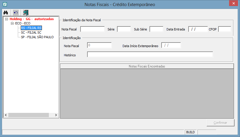 Importante: Os créditos extemporâneos serão criados através da nota fiscal, portanto, caso a mesma possua mais de um item e já exista ficha criada para qualquer um dos itens, o sistema interpretará que a nota fiscal já possui ficha, e o crédito não será criado, sendo necessária a abertura do período e correção da escrituração.