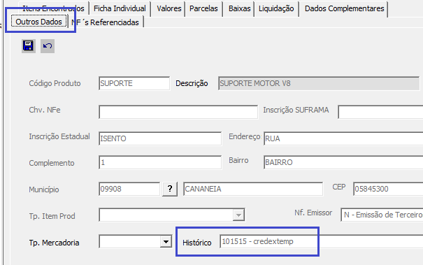 O Histórico digitado pelo usuário na tela de Manutenção de Crédito Extemporâneo poderá ser visualizado na tela Manutenção de Fichas, através da pasta Outros Dados.