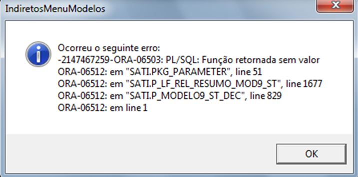 ORA-06512: em “SATI.P_MODELO9_ST_DEC”, line 829