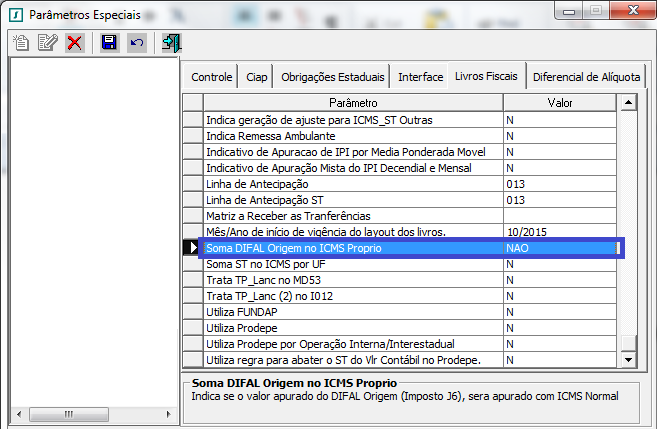 Criação do parâmetro por filial “Soma DIFAL Origem no ICMS Próprio” default ‘N’ .