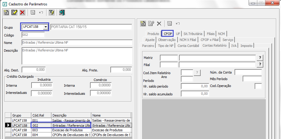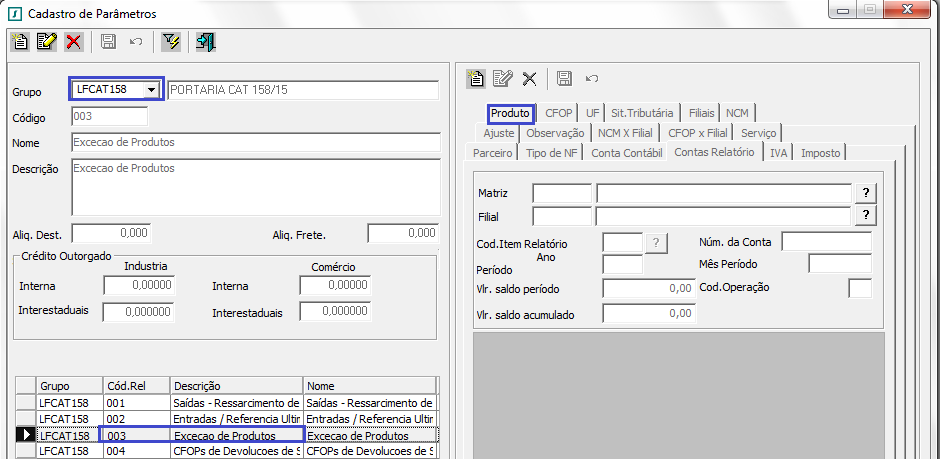 Objetivo: Cadastrar os Produtos que deverão ser desconsiderados do cálculo da Portaria CAT 158/15.