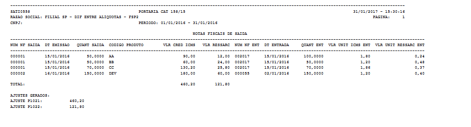 Ajuste: P1021 - CREDITO ICMS - CAT-158/15