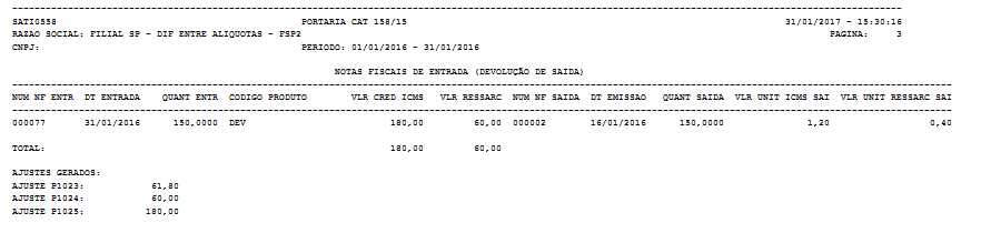 Ajuste: P1024 - ESTORNO RESSARC. ICMS REF. DEVOLUCOES - CAT-158/15