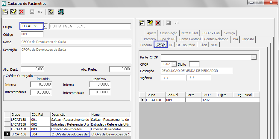 Objetivo: Cadastrar os CFOP’s de Entrada, referente às devoluções de saída.