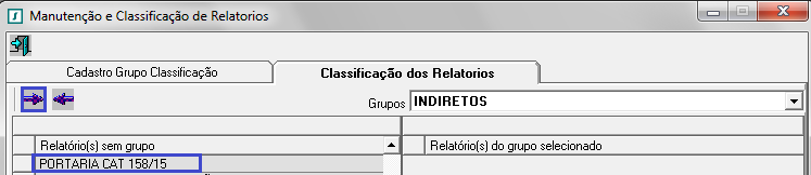 O relatório constará como “Relatório sem Grupo”. Escolha um grupo (lado direito da tela), marque a linha do relatório e clique na seta
