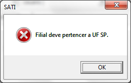 O relatório só poderá ser gerado para Filiais de São Paulo. Na tentativa de geração para Filiais de outro Estado será apresentada a seguinte mensagem: