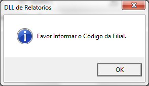 O preenchimento do código da Filial é obrigatório. Se o código não for informado, será apresentada a seguinte mensagem: