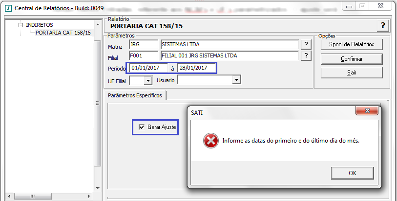 Quando não houver flag em Gera Ajuste?”, o relatório será gerado apenas para conferência e portanto, poderão ser informadas data inferiores ou superiores a um mês.