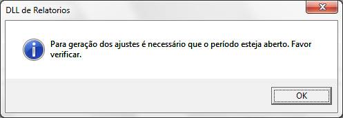 “Para geração dos ajustes é necessário que o período esteja aberto. Favor verificar”