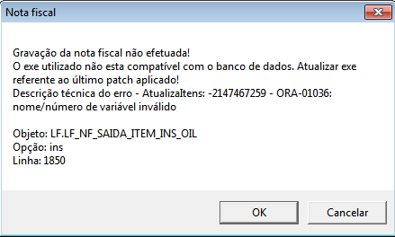 Descrição da Nota: Tratamento efetuado para que não ocorra mensagem de erro "AtualizaItens: -2147467259 - ORA-01036" na inclusão/edição de notas fiscais detalhadas no ambiente OIL.