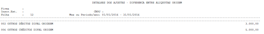 Deverá ser criado dois ajustes para o imposto 01 (ICMS) e dois ajustes para o imposto J6 (DIFAL ORIGEM). Vide exemplo:
