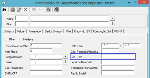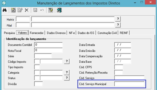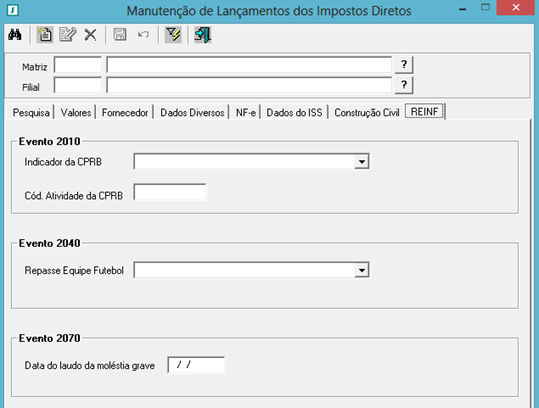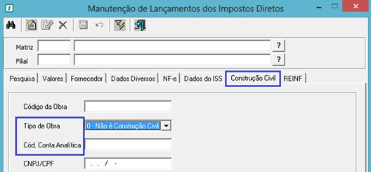 Para atender a Obrigação Federal EFD-REINF foram liberados novos campos na tela Manutenção de Lançamentos dos Impostos Diretos.