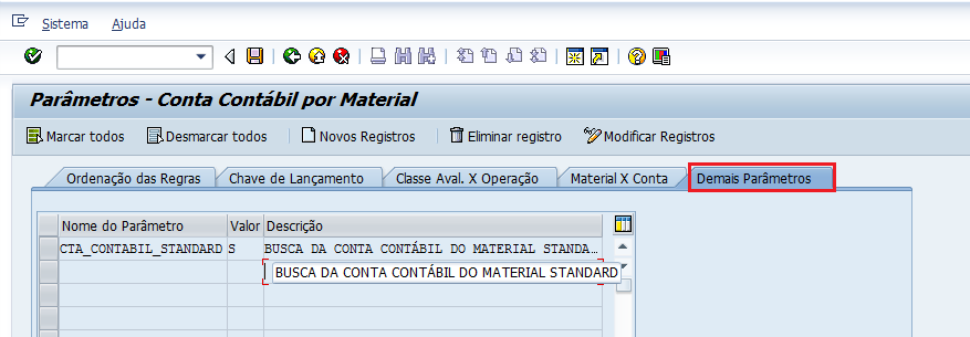 Valor: Se o parâmetro estiver com valor ‘S’, o programa irá processar os dados da conta contábil de forma standard, disponibilizado pelo SAP:
