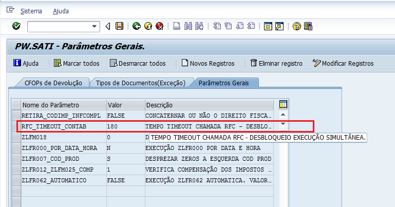 Descrição: Tempo Timeout Chamada RFC - Desbloqueio execução Simultânea.