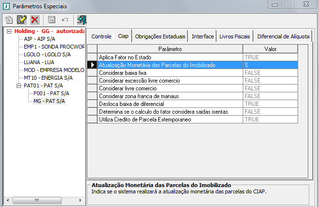 As parametrizações não devem ser alteradas no decorrer dos fechamentos, pois podem ocasionar divergências nos valores apresentados no Modelo C.