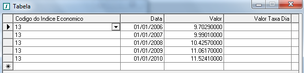 1 - Ao informar a utilização de correção monetária, há necessidade de cadastro dos índices utilizados na tabela lf_indice_valor.