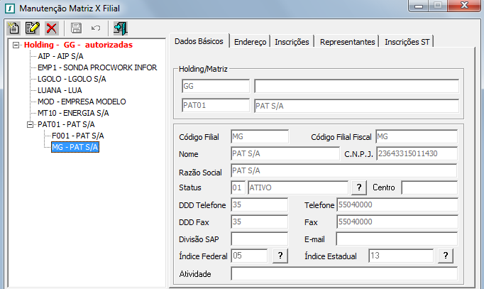 Menu Gerência > Parâmetros Empresa > Empresa Filial