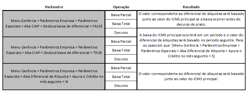 Cabe ressaltar, que se houver utilização de correção monetária, todas as parametrizações do deslocamento do diferencial de alíquotas devem ser realizadas por filial. Nesse caso, é preciso definir a forma de criação das fichas, indicando se o diferencial de alíquotas será apropriado no mês da aquisição, ou no mês seguinte.