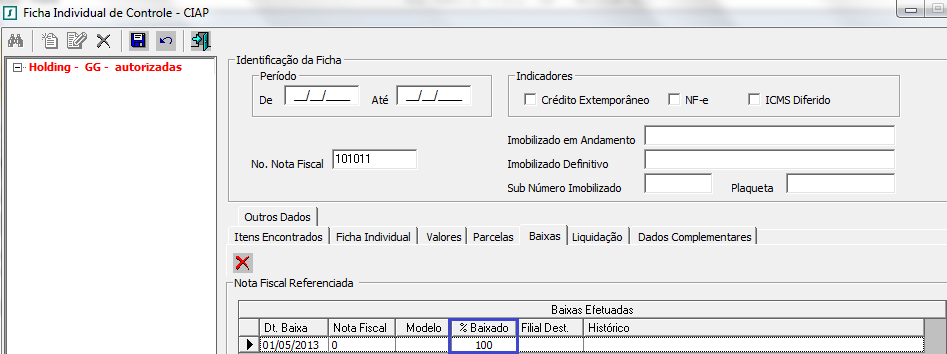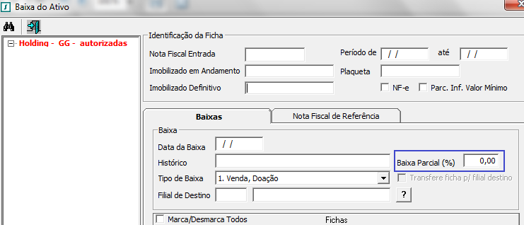 Foi realizado tratamento no CIAP para não permitir a baixa parcial do imobilizado,