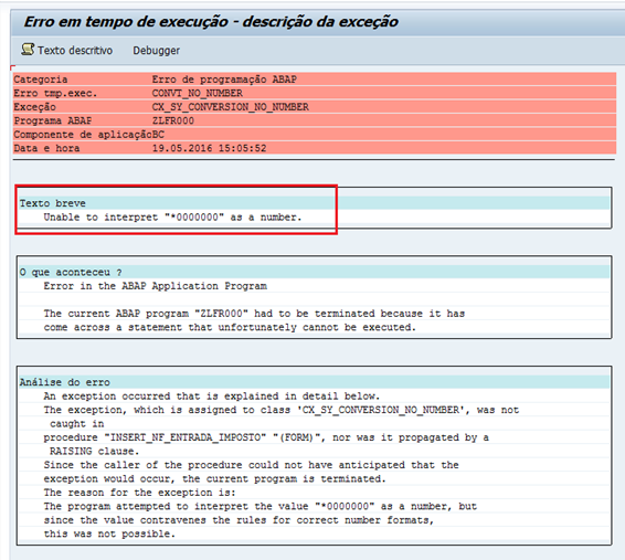 Descrição da Nota: Correção realizada na Interface de Indiretos - Serviço (ZLFR100), para o Dump: "Unable to interpret "*0000000" as a number".
