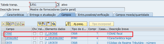 Para o campo COD_CNAE há informações na origem standard do SAP, desta forma, a regra de extração será lida pela tabela standard LFA1, campo CNAE.
