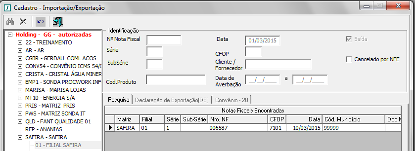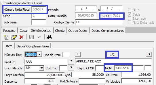 A estrutura da tela de Notas Fiscais é por item, podendo conter diferentes NCM e não apenas por Nota Fiscal.