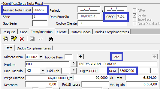 Exemplo abaixo: NF 6587 e NCM diferentes: