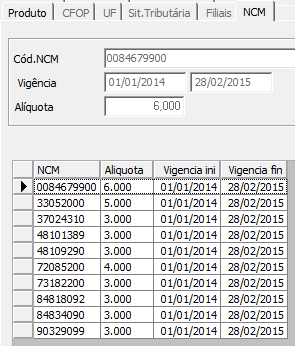 Importante: Mesmo que a seleção dos NCM’s esteja pelo código de produto, será necessário o cadastro dos NCM’s aba NCM, para definição do percentual do crédito, para solicitação do crédito com data base até 28/02/2015.
