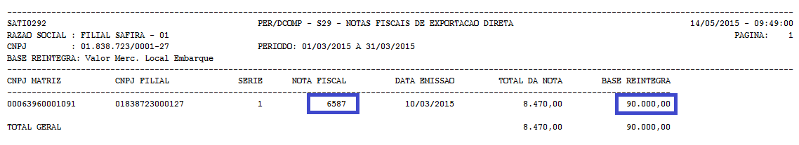 Caso o Valor da Base Reintegra seja composto pelo Valor de RE ou pelo Valor da Merc.Local Embarque, favor abrir chamado.
