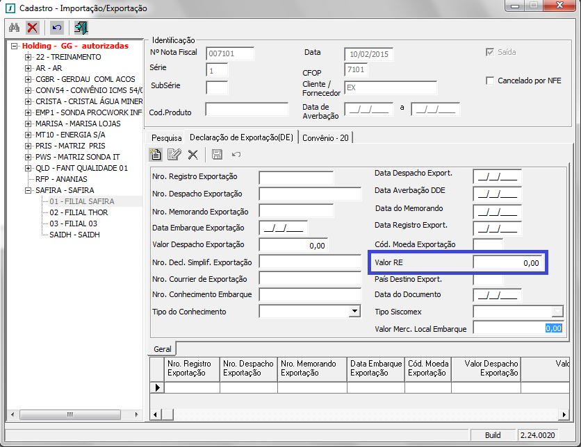 É importante observar que o preenchimento da base de cálculo do Reintegra para os registros S28 e S29 quando a opção for Valor RE ou Valor da Mercadoria no Local do Embarque, dependem da informação cadastrada na tela de Cadastro-Importação/Exportação.