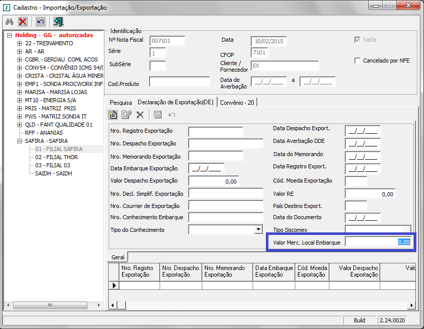 Esclarecemos que a estrutura para cadastro do Valor do Re ou Valor da Mercadoria no Local de Embarque é por Nota Fiscal e não por item ou NCM, conforme tela abaixo: