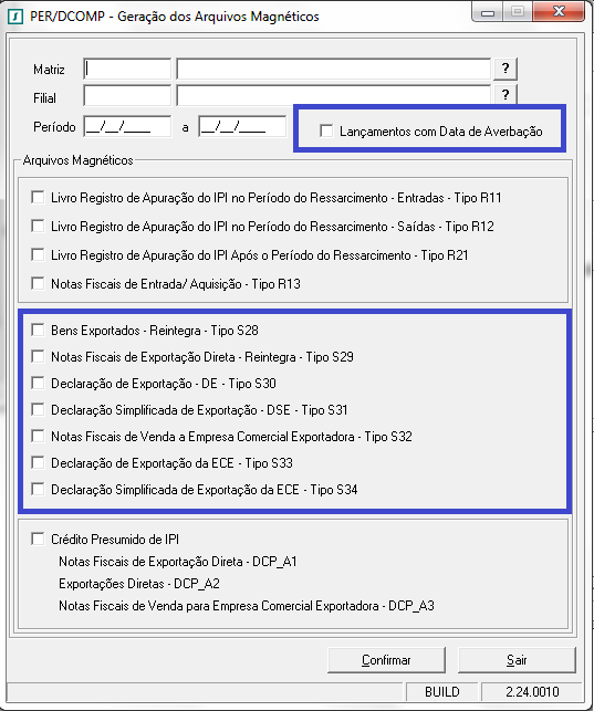 Quando flegado apresenta nos registros S28, S29, S30 e S31 as informações das notas fiscais de exportação que contém a Data de Averbação preenchida.