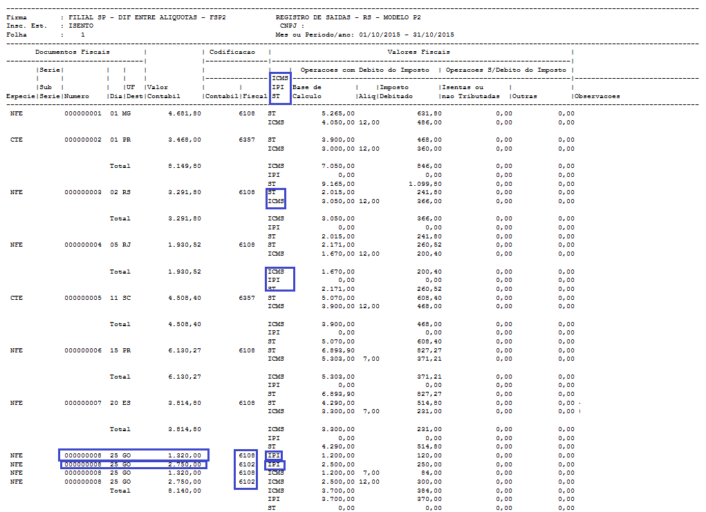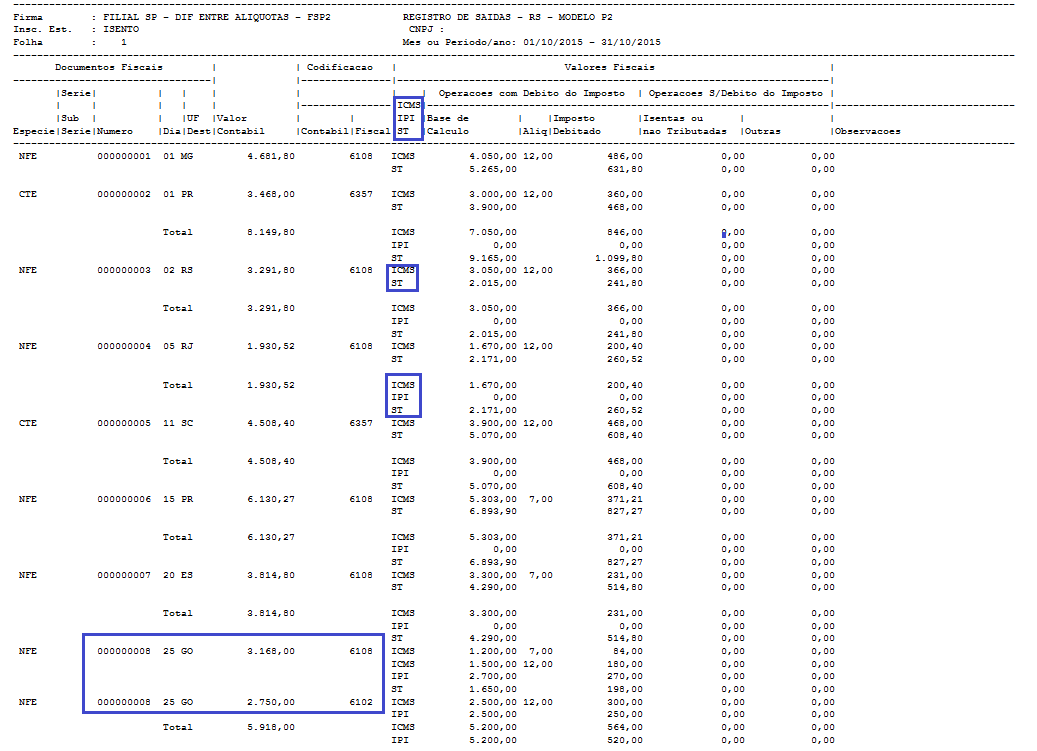O valor contábil dos livros estavam sendo duplicados, para notas fiscais de saída com ICMS e IPI, com mais de um CFOP.