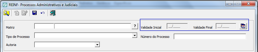 Inclusão do botão Nova Validade e alteração do nome dos campos Vigência Inicial e Vigência Final para Validade Inicial e Validade Final e alteração do formato dos campos de Data para Mês/Ano