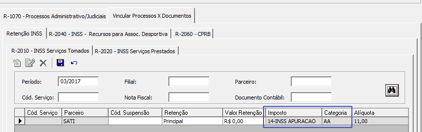 Tratamento para demonstrar o código do imposto e descrição na coluna Imposto nas abas R-2010 Serviços Tomados.