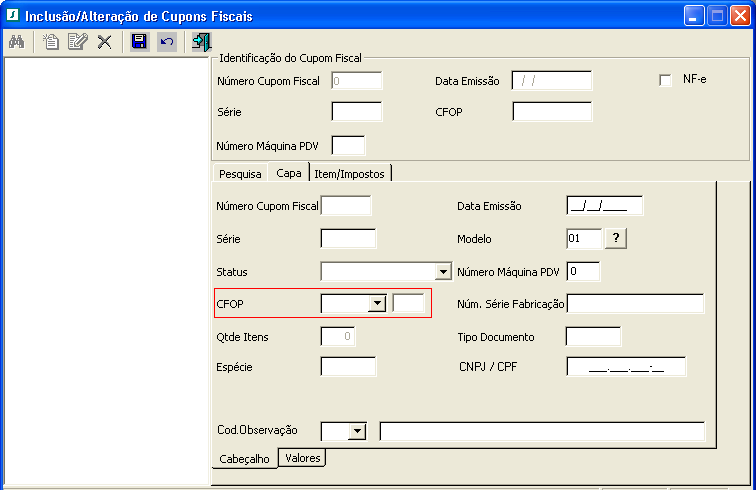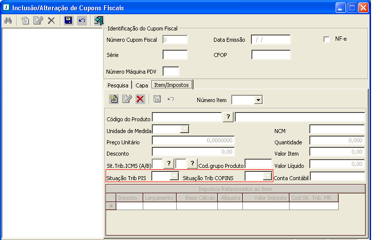 Descrição da Nota: Inclusão de campo na tela Inclusão/Alteração de Cupons Fiscais.