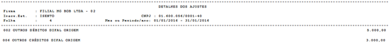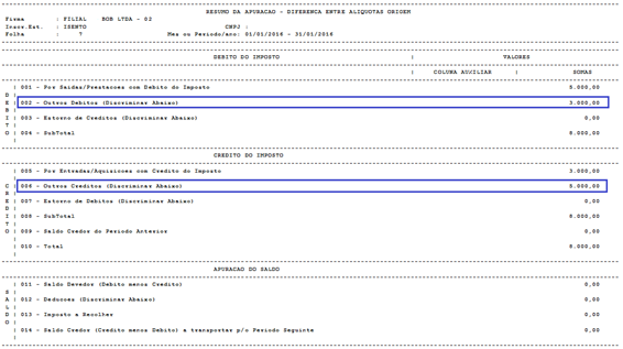 Resumo de Apuração – Diferença entre alíquotas Origem – Linha 006 – Outros Créditos