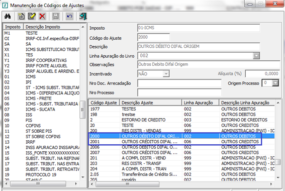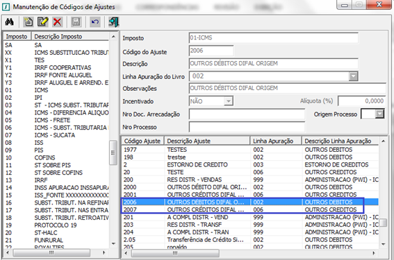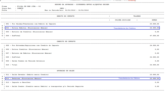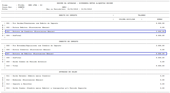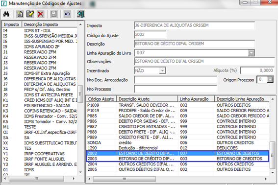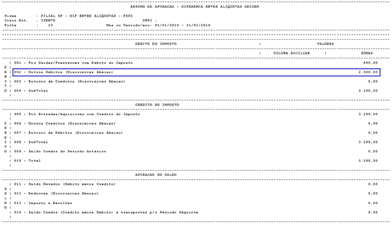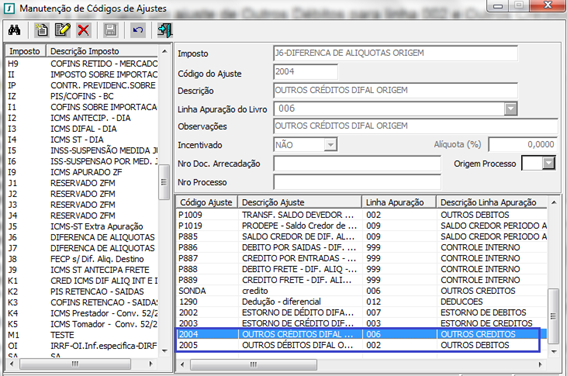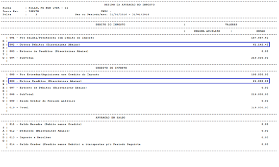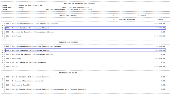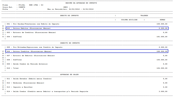 Assim, na Apuração do Imposto e dados para o Sped Fiscal o ajuste será demonstrado na linha de apuração correta. Exemplo: Outros Débitos para linha 002 e Outros Créditos para linha 006.