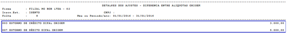 DIFAL ORIGEM deverá ser criado um ajuste de Estorno de Créditos para linha 003 e outro ajuste de Estorno de Débitos para a linha 007.