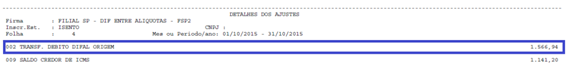Descrição: TRANSF. DÉBITO DIFAL ORIGEM