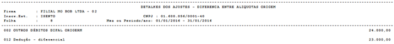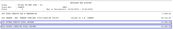 DIFAL Origem – Linha 002 – Outros Débitos |