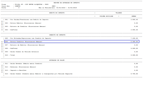 | ICMS Próprio – Linha 006 – Outros Créditos |