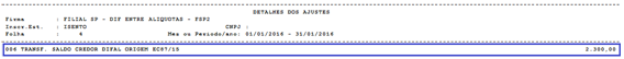 Descrição: TRANSF. CRÉDITO DIFAL ORIGEM
