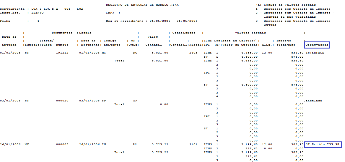 2. Livro Registro de Entradas (P1 e P1A):